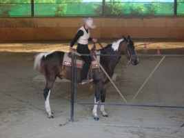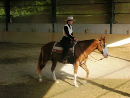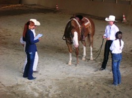 Für die folgenden Disziplinen wurde nun das Pferd gewechselt. Die Nummer 1 des Gestüts Schloss Thalheim "Arch me Sophy" meisterte die folgenden Teilprüfungen Horsmanship - Pleasure und Reining mit Bravour. Auch die folgende theoretische Prüfung stellte danach kein Hindernis mehr dar.