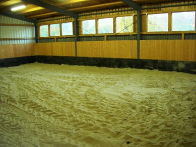 Für die Bewegungstherapie Ihres Pferdes ist es auch wichtig, dass Sie im Winter oder an verregneten Tagen etwas unternehmen können. Hierfür haben wir unsere Halle errichtet! |